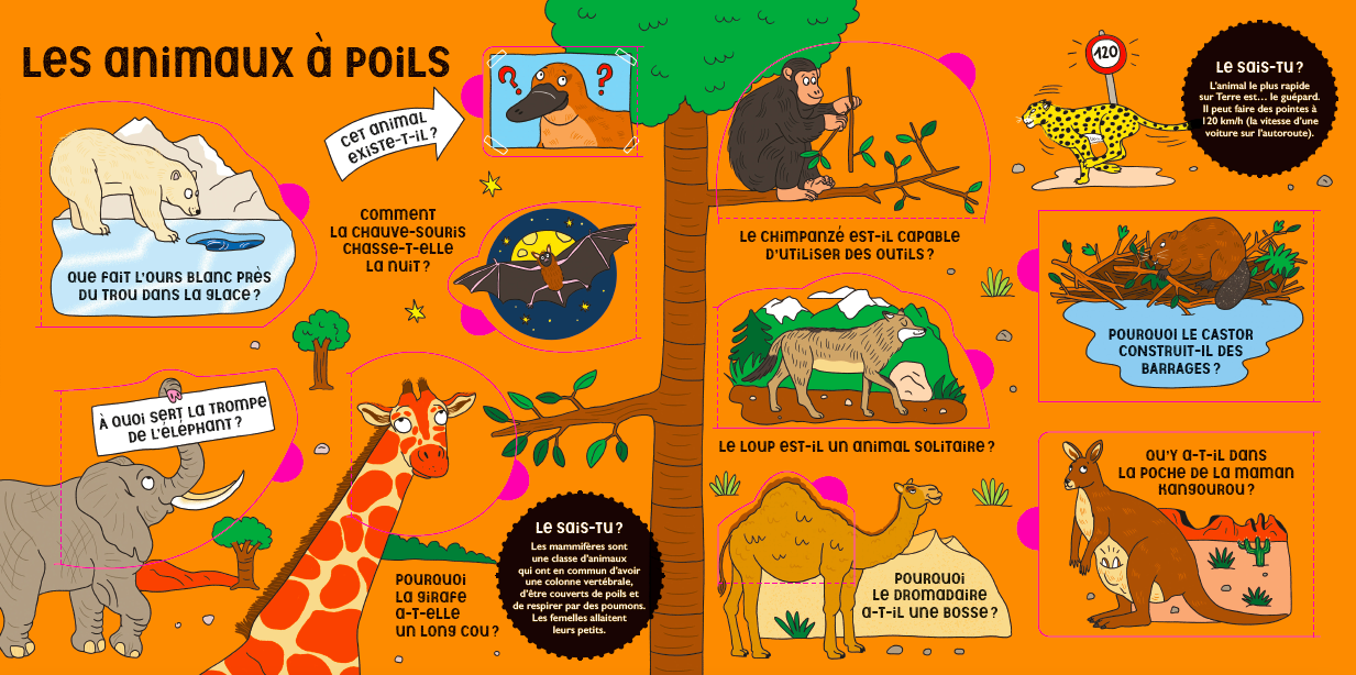avec plus de 50 flaps à soulever, le petit lecteur va découvrir des réponses à toutes ses questions sur les animaux.